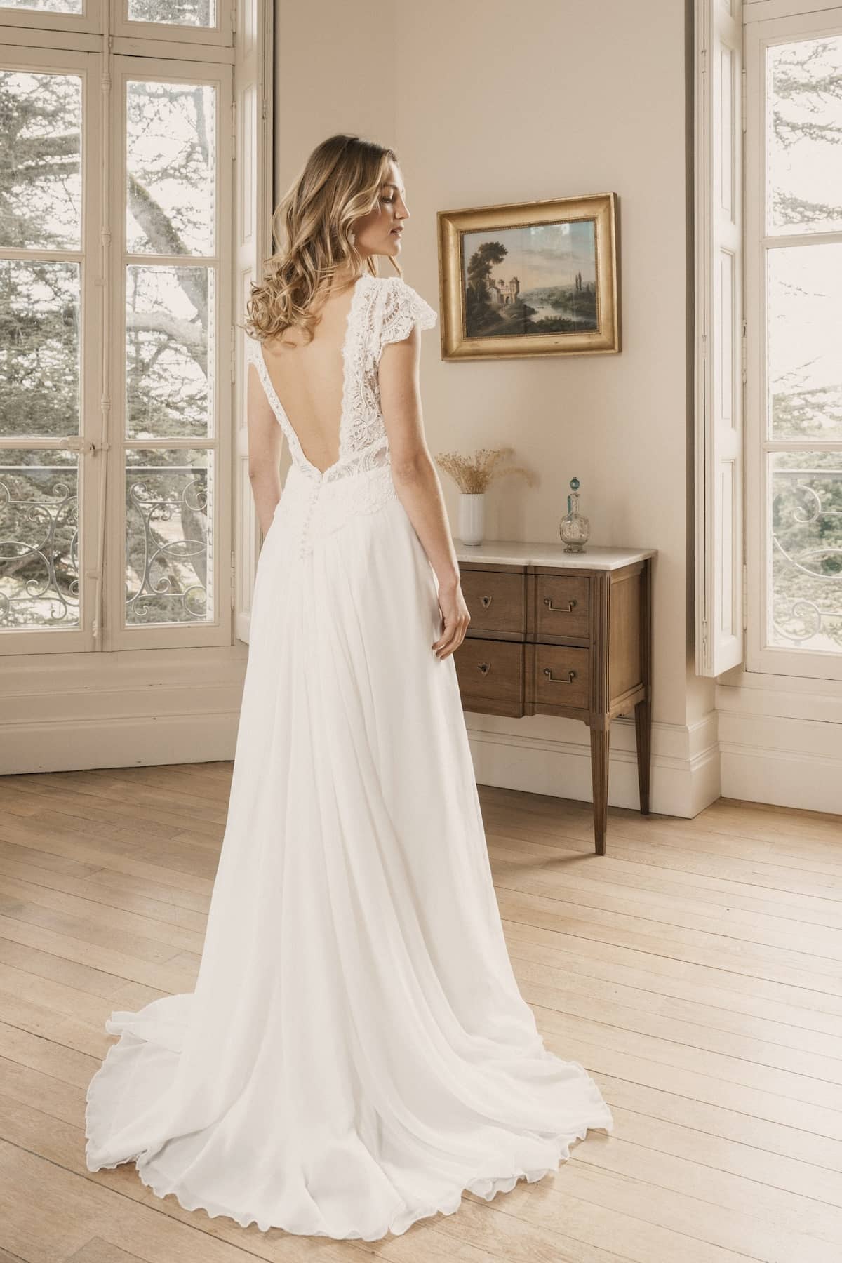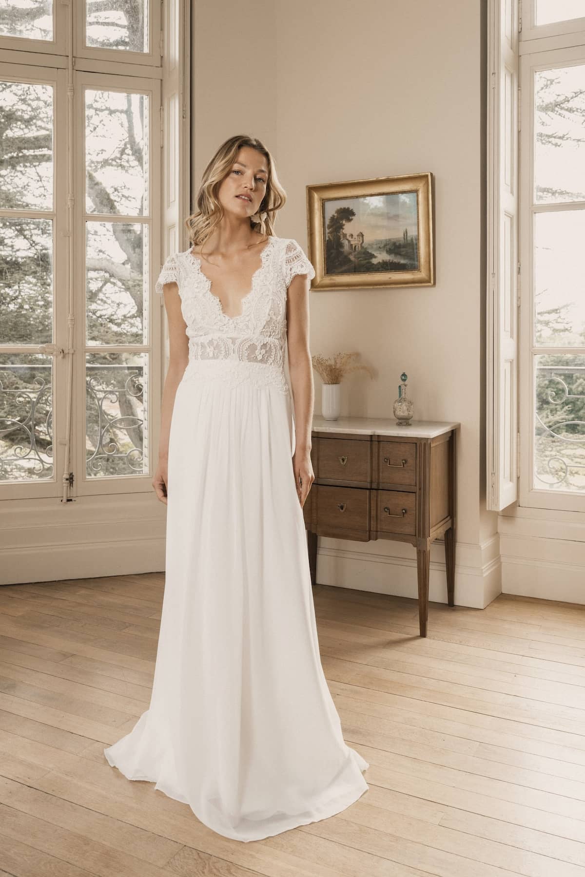 La robe Rita se distingue par sa belle dentelle, véritable icône d’une maison reconnue à Calais. Sa coupe très saillante met en valeur toutes les morphologies, offrant une silhouette flatteuse pour chacune. La jupe plissée en mousseline apporte une légèreté et un mouvement enchanteur. De plus, vous avez la liberté de choisir parmi différentes options en sus , comme des manches courtes ou longues, pour personnaliser votre look selon vos envies. Cette robe allie tradition et modernité, parfaite pour toutes les occasions.